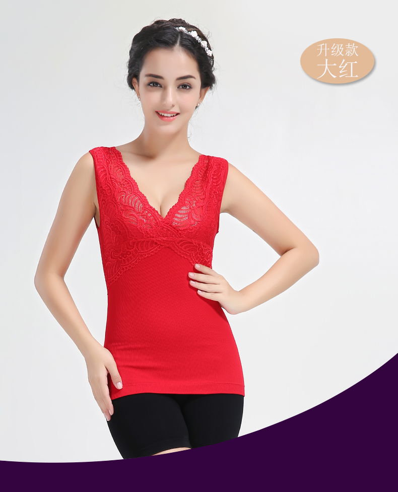南极人保暖背心女加绒加厚V领蕾丝塑身上衣收腹托胸束腰打底内衣