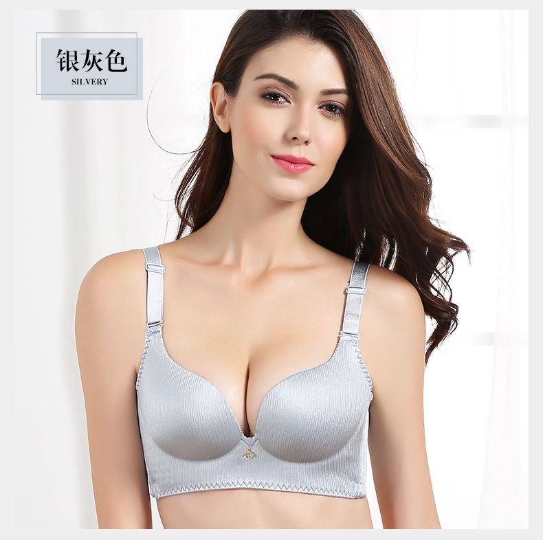 一片式无痕无钢圈收副乳聚拢调整型文胸中模杯厚薄款性感无骨内衣
